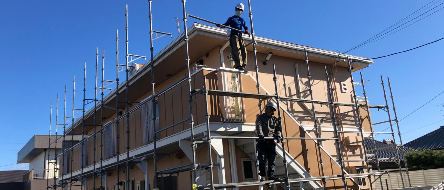 三重県津市の『コーポ高松』様(B棟)の塗装をアサヒ美装が担当させていただいております。